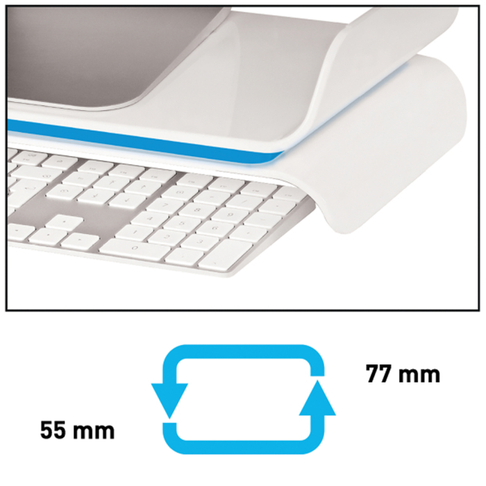 Ergonomický stojan pod monitor Leitz WOW zdvihne váš monitor do optimálnej výšky, čo podporuje zdravé a ergonomicky správne držanie tela a optimalizuje pohodlie pri držaní krku a chrbta. Elegantný dizajn ponúka organizované pracovné prostredie aj na malom stole s obmedzeným miestom pre klávesnicu. Stojan je výškovo nastaviteľný a hodí sa do všetkých moderných kancelárií zameraných na minimalistický dizajn. Farba modrá.