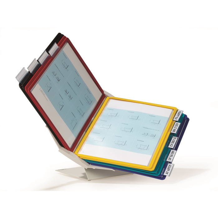 Variabilný a moderný panelový systém, ktorý je možné umiestniť na stôl alebo upevniť na stenu. Držiak panelov je možné natáčať, čo umožní horizontálne aj vertikálne listovanie. Je dodávaný s 10 panelmi. Farba stojana sivá, panely sú dodávané v mixe farieb (čierna, červená, žltá, zelená a tmavomodrá).