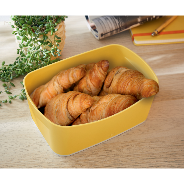 Úložný box je ideálny na uloženie všetkých dôležitých drobností, ako sú napríklad káble, zošívačka, domáce náradie, čistiace prostriedky. MyBox má certifikáciu Food safe, je vhodný na prenos teplých aj studených jedál, na uloženie potravín - čaju, kávy, mlieka, cukru - vo firemnej kuchynke či na recepcii, doma na ovocie a pod. Tento box prvotriednej kvality je perfektným doplnkom vášho domova alebo kancelárie, pomôže s organizáciou dôležitých drobností a uľahčí a spríjemní vám prácu. Materiál plast. Rozmery 246 x 98 x 160 mm. Farba žltá.