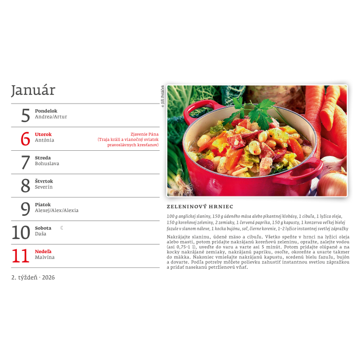 Formát kalendára: 22,6 x 13,9 cm Kalendárium: slovenské týždenné riadkové Počet strán kalendára: 58 + 2 Stojanček: so zámkom Priestor na potlač: 22,6 x 3 cm