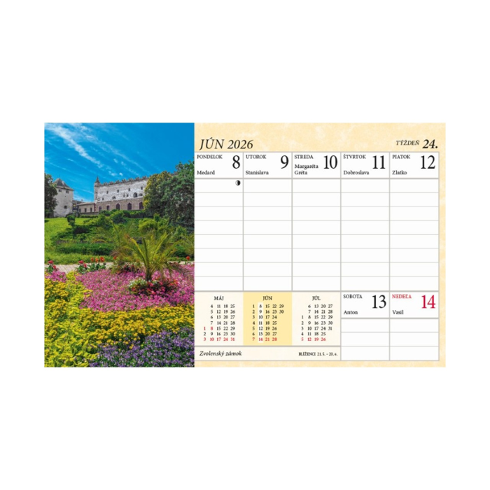 Praktický menší formát stolového kalendára obohatený zábermi zo Slovenska.