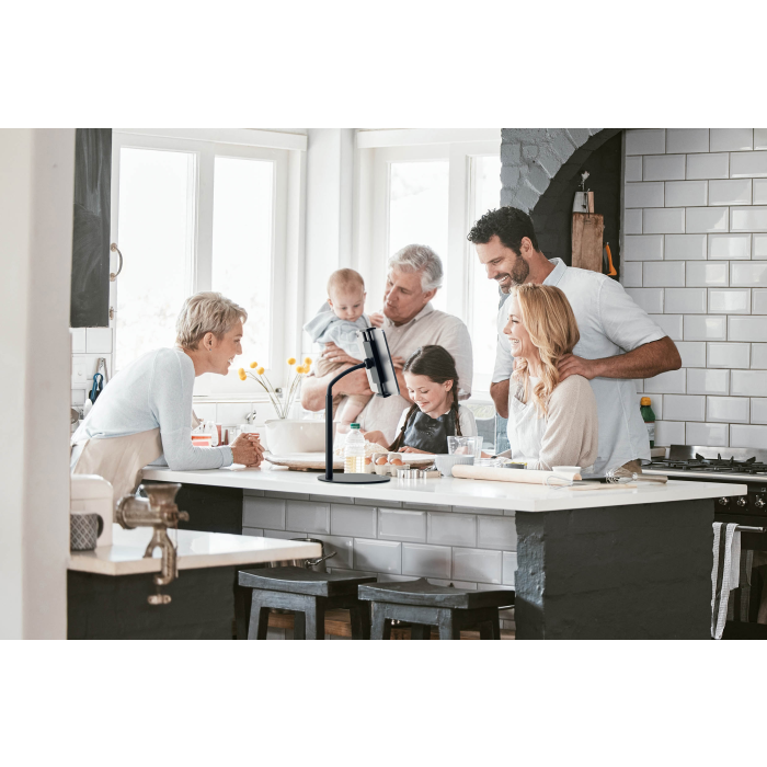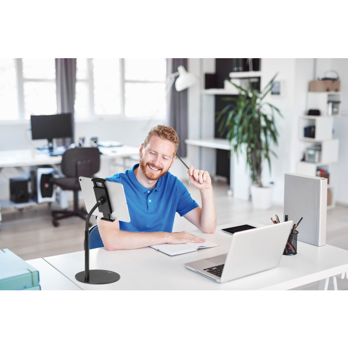 Stojan na stôl pre tablety a mobilné telefóny od 4,7-13`. Plynulá otočnosť a nastavenie výšky pomocou flexibilného ramena.
