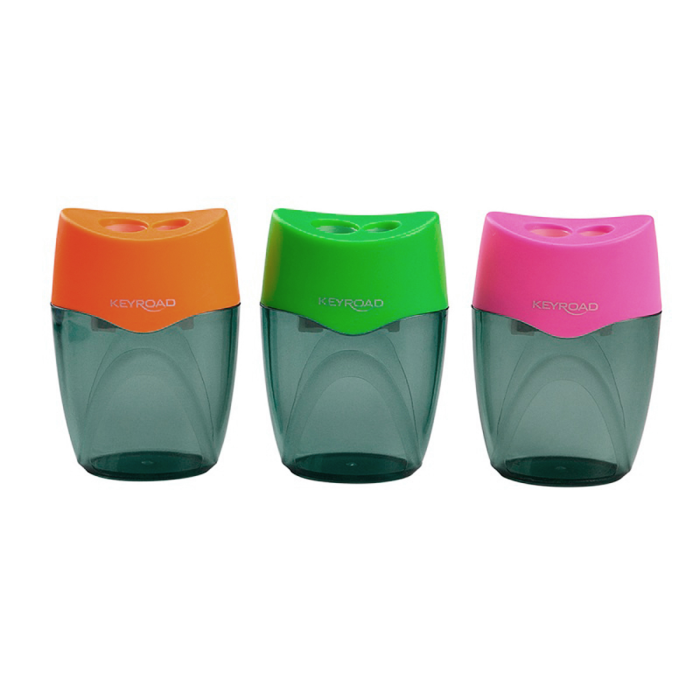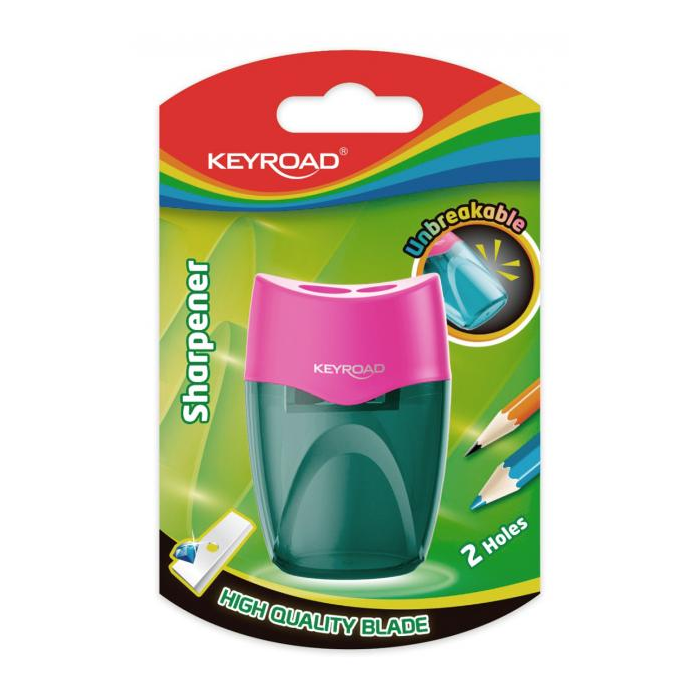 Plastové strúhadlo KEYROAD s nerozbitnou nádobou, dvojité. Balenie: blister. Farba: mix farieb.