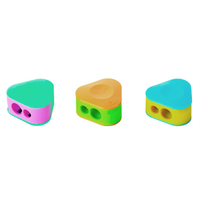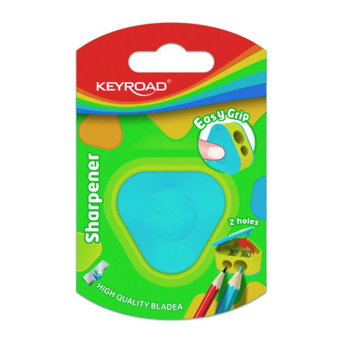 Trojuholníkové plastové strúhadlo KEYROAD, dvojité. Balenie: blister. Farba: mix farieb.