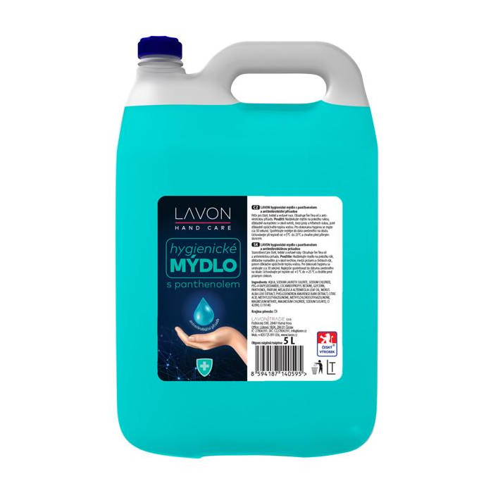 Hygienické mydlo s panthenolom zaistí hygienickú čistotu Vašich rúk. Vďaka obsahu vyživujúcich látok je mydlo vhodné aj k častému umývaniu a zanechá Vaše ruky hebké a voňavé. Mydlo obsahuje antimikrobiálne prísady. Má hustú konzistenciu a bohato pení.