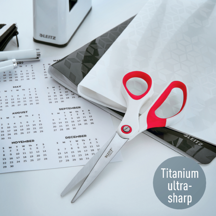 Titánové kancelárske nožnice Leitz WOW 205 mm červené