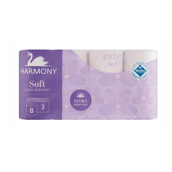 Toaletný papier 3-vrstvový Harmony Soft FLORA Parfumes biely, návin 16,8 m (8 ks)