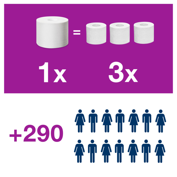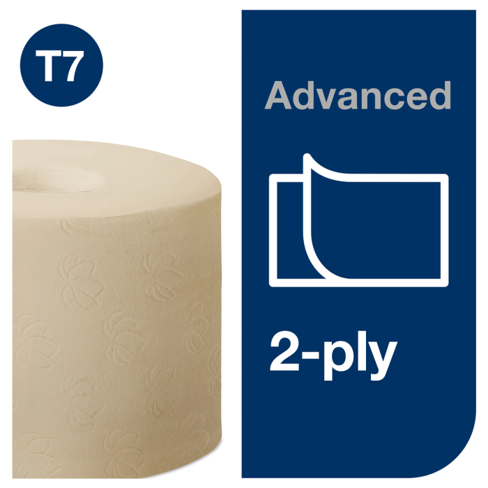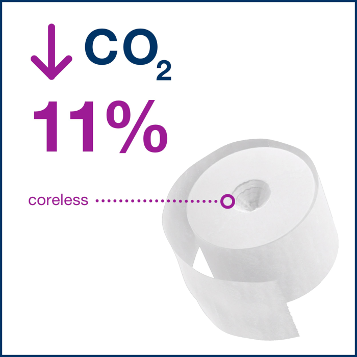 Systém dvojitého zásobníka Tork na bezdutinkový toaletný papier na kotúči je ideálny pre nízko až stredne frekventované toalety a umyvárne s vysokým dôrazom na spokojnosť zákazníkov. Zabezpečuje vysokú účinnosť a to, že toaletný papier je vždy k dispozícii pre hostí tým, že do neho možno vložiť dva celé kotúče strednej veľkosti. Tork Mid-Size bezdutinkový toaletný papier v kotúči Advanced predstavuje rovnováhu medzi cenou a funkčnosťou. Hygienický papier je vyrobený zo 100 % recyklovaných vláken.