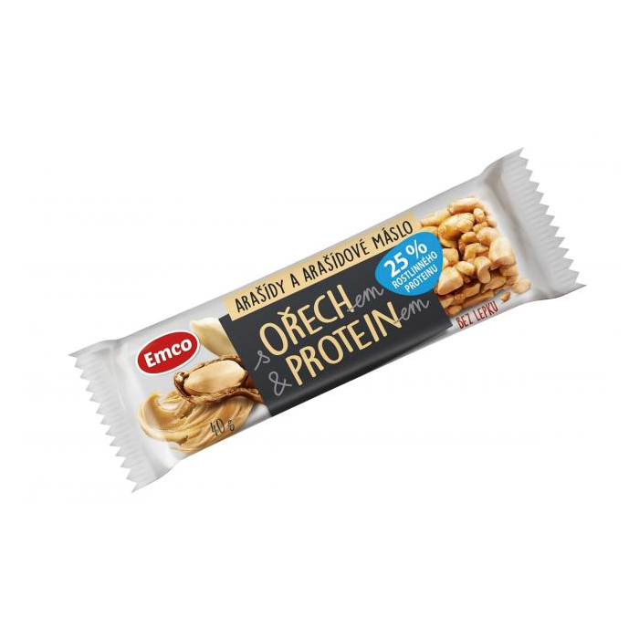 Arašidová tyčinka so sójovým proteínom, arašidovou pastou a lieskovými orechmi 40 g