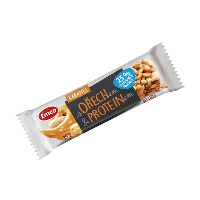 Arašidová tyčinka so sójovým proteínom a karamelom.