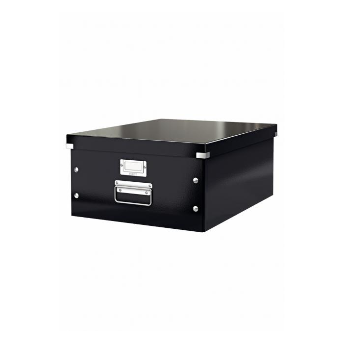Skladacia archivačná krabica vhodná na ukladanie dokumentov formátu A3, fólií, obalov, obálok, zakladačov, katalógov a pod. Rámik na popisovací štítok, laminovaný povrch pre lepšiu a trvalejšiu ochranu, kovové rohy a robustné kovové úchyty pre ľahký prenos. Moderný design, ktorý vyzerá skvelo doma i v kancelárii. Jednoduché zloženie a vysoká stabilita vďaka pevnej konštrukcii. Rozmery (š × v × h) 369 × 200 × 482 mm. Farba čierna.