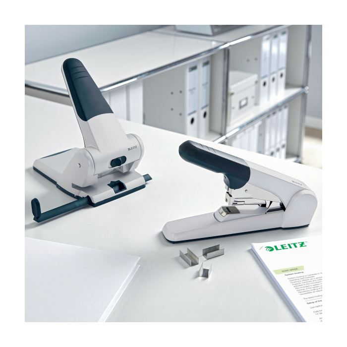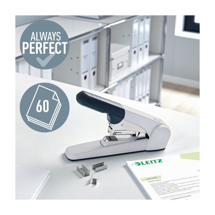 Veľkokapacitná zošívačka Leitz 5552 s plochým zošívaním sivá