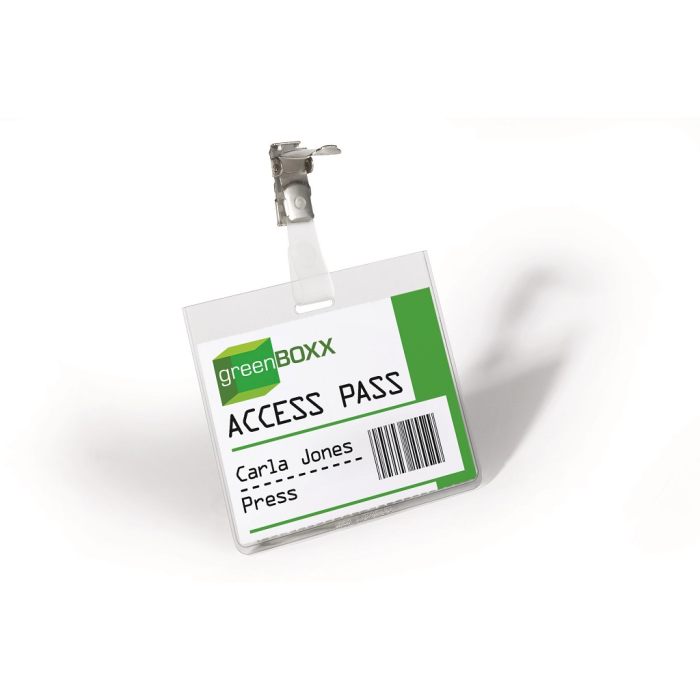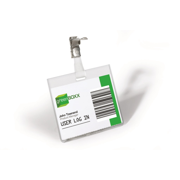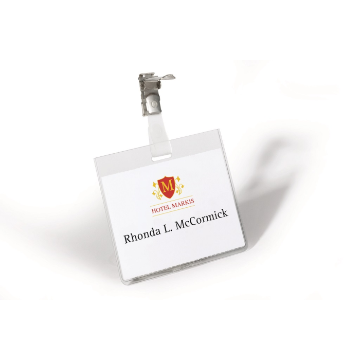 Priehľadná visačka s európskym štipcom, umiestneným na dlhšej strane visačky. Dodávaná s papierovou kartičkou rozmerov 90×60 mm. Model, pri ktorom po uzavretí štipca nie je možné menovku vybrať. Náhradné papieriky obj. kód DU145602. Balenie 25 ks.