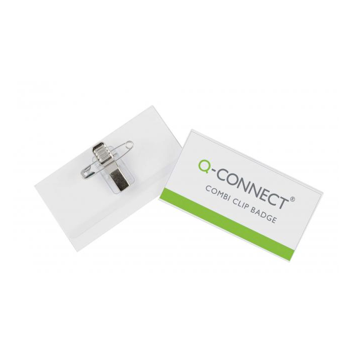 Visačka z pevného priehľadného PVC. Uchytenie na odev pomocou štipca alebo zatváracieho špendlíka. Rozmery š × v 90 × 54 mm, balenie 50 ks.