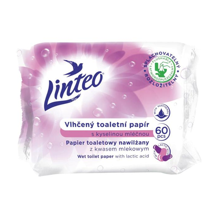 Vlhčený toaletný papier Linteo s kyselinou mliečnou je špeciálne navrhnutý na dennú hygienu a starostlivosť o intímne oblasti. Vďaka obsahu kyseliny mliečnej udržuje vyvážené pH v intímnych oblastiach. Obsahuje pantenol, upokojuje a hydratuje. Aloe vera prispieva k starostlivosti o citlivú pokožku. Poskytne Vám pocit čistoty a sviežosti ako doma, tak aj na cestách. Veľmi jemný a zároveň pevný materiál je rozložiteľný a splachovateľný.