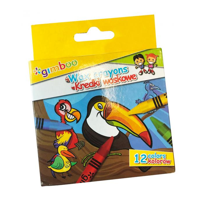 Vysokokvalitné voskové farbičky GIMBOO. Ľahko sa ostria. 12 žiarivých, intenzívnych farieb. Každá pastelka je zabalená v papierovom obale. Dĺžka: 8,6 cm, priemer pastelky: 8 mm. Bezpečné pre deti, netoxické, nelepivé, bezprašné, nedrobia sa. Balenie sada 12 farieb.