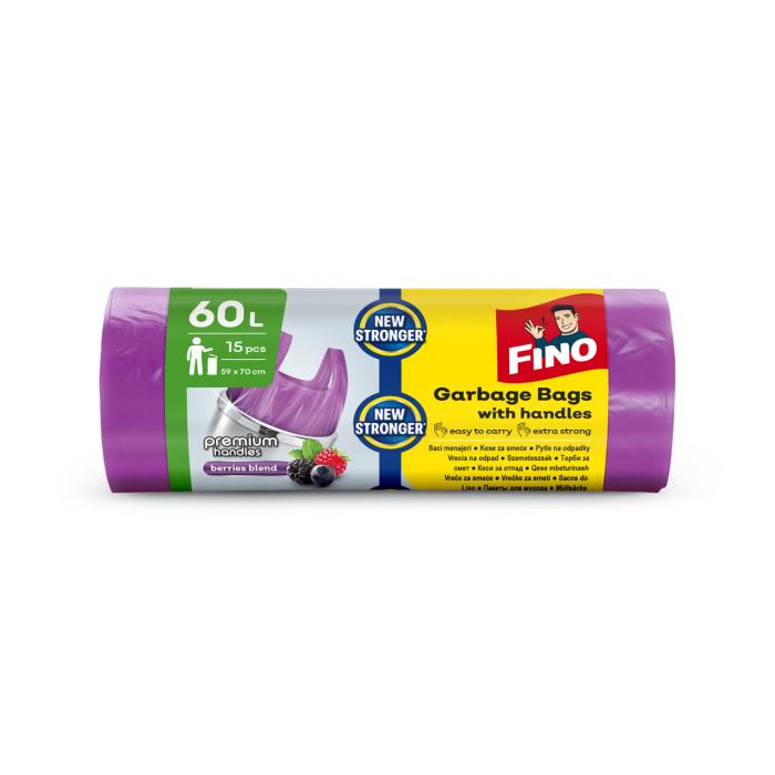 Vrecia zaväzovacie s ušami FINO Premium aromatic 60 ℓ, 14 mic., 59 x 72 cm, fialové (15 ks)