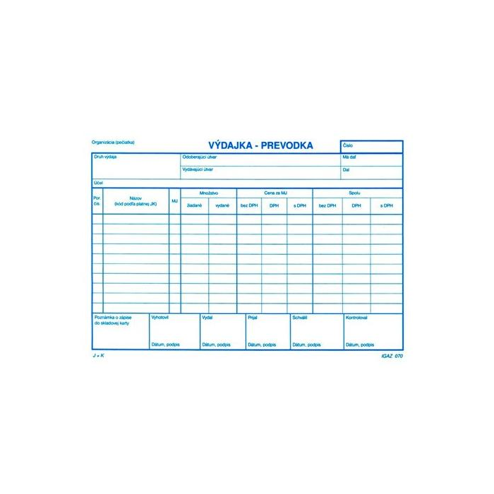 Obchodné tlačivo. Výdajka - prevodka s DPH, A5, blok, 100 listov.