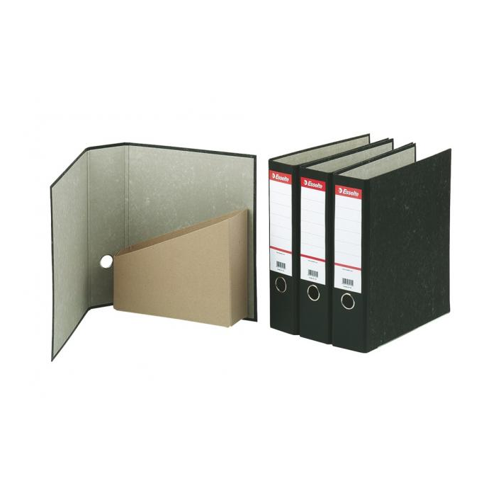 Zakladač s papierovým poťahom čierneho mramorového vzoru, natlačenou etiketou a vnútornou archivačnou škatuľou. Dodávaný v rozloženom stave. Formát A4, šírka chrbta 8 cm. Väčšie balenie 10 ks.