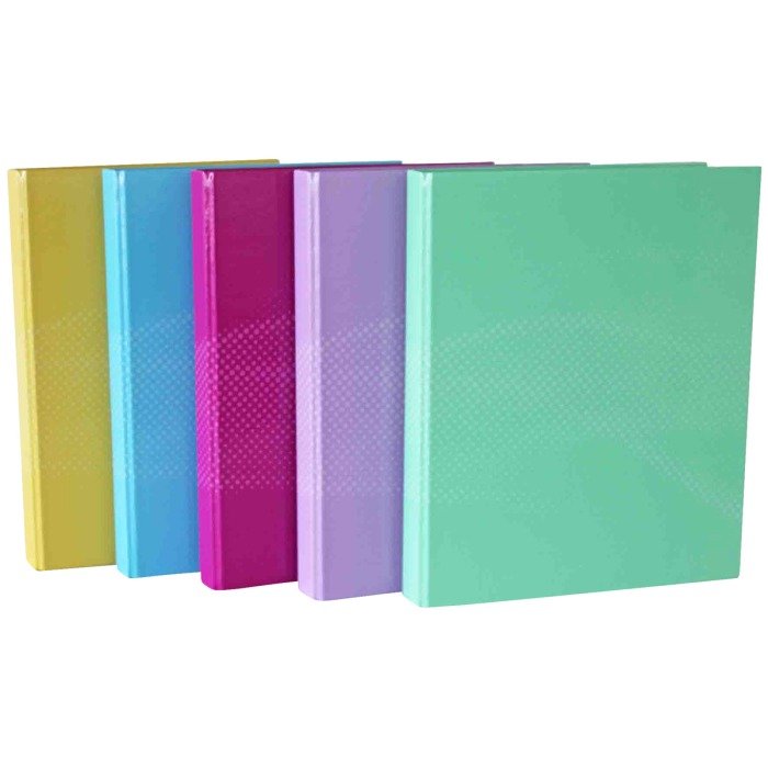 Krúžkový zakladač, 5 rôznych pastelových farieb, pre formát DIN A4, 2 krúžky, priemer krúžku 25 mm, laminovaný lesklý papierový povrch