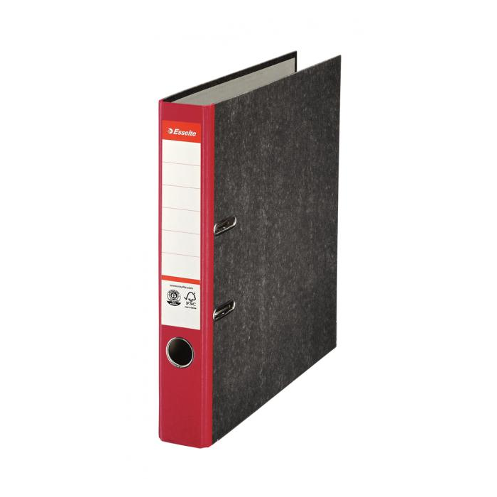 Štruktúrovaný papierový poťah s čiernym mramorovým vzorom, formát A4. Zakladač vybavený rado zámkom a nalepeným chrbtovým štítkom. Páková mechanika v dizajne MATT s prítlačnou lištou. Šírka chrbta 5 cm. Balenie 25 ks.
