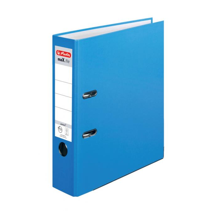 Pákový zakladač maX.file protect A4, Color Blocking, materiál PP. Otvor na zadnej strane a radokrúžok pre lepšiu manipuláciu. Šírka chrbta 8 cm. Farba baltická modrá.