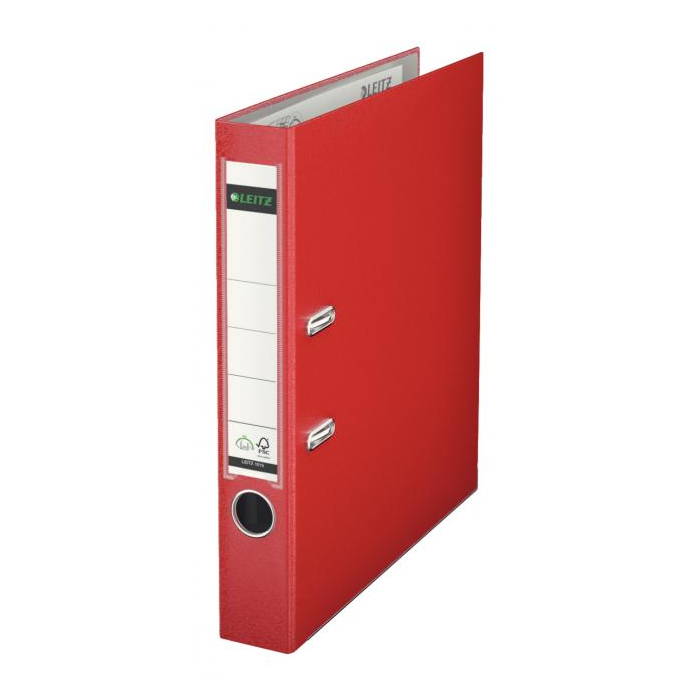 Patentovaný pákový celoplastový zakladač formátu A4 vyrobený z kvalitného kartónu. Vonkajšia strana potiahnutá farebnou polypropylénovou fóliou, vnútorná svetlosivou fóliou. Zakladač je vybavený vysokokvalitnou mechanikou Leitz, chrbtovým krúžkom, kovovou lištou a vymeniteľným papierovým štítkom na popis. Vysokokvalitná mechanika umožňuje o 50 % širšie otvorenie zakladača než dovoľuje bežná páková mechanika, čo znamená až 20 % úspory času pri manipulácii a archivácii dokumentov. Šírka chrbta 5,2 cm. Väčšie balenie 10 ks. Farba červená.