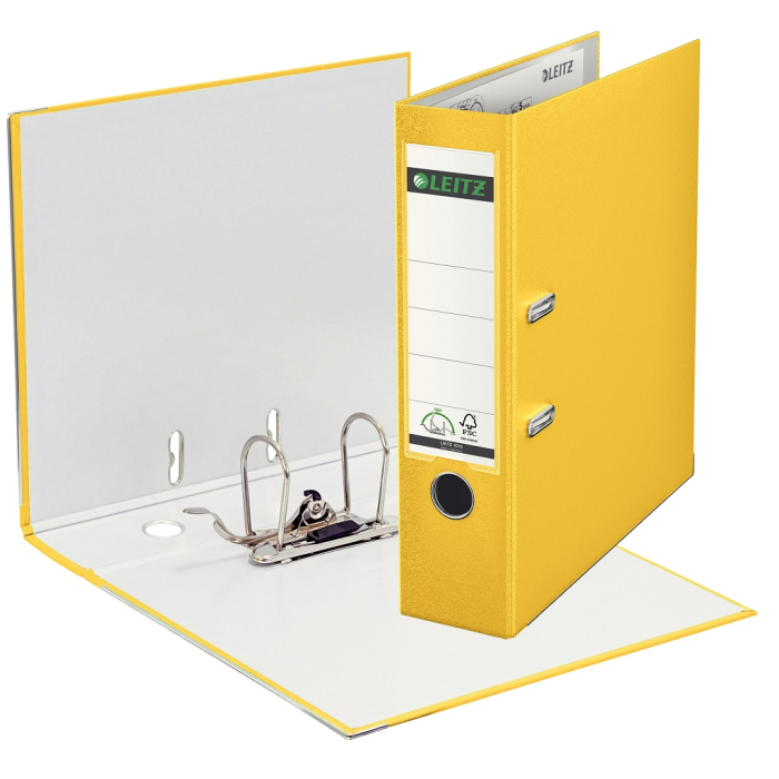 Patentovaný pákový celoplastový zakladač formátu A4 vyrobený z kvalitného kartónu. Vonkajšia strana potiahnutá farebnou polypropylénovou fóliou, vnútorná svetlošedou fóliou. Zakladač je vybavený vysokokvalitnou mechanikou Leitz, chrbtovým krúžkom, kovovou lištou a vymeniteľným papierovým štítkom na popis. Vysokokvalitná mechanika umožňuje o 50 % širšie otvorenie zakladača než u bežnej pákovej mechaniky, čo znamená až 20 % úspory času pri manipulácii a archivácii dokumentov. Šírka chrbta 8 cm. Väčšie balenie 10 ks.