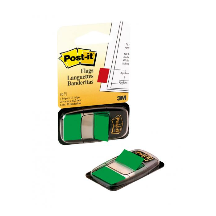 Široké acetátové záložky do kníh, časopisov, pre register do cenníkov, katalógov, kartoték, zakladačov, archívov a pod. Priehľadná lepiaca časť a farebná časť pre označenie. Prelepiteľné, znovunalepiteľné a popisovateľné. Rozmer záložky 25,4 × 43,2 mm. Balenie 50 lístkov. Farba: zelená.