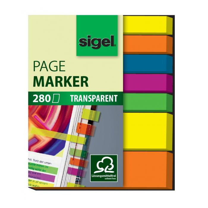 Priehľadné fóliové lepiace záložky v praktickom balení. Rýchle a jednoduché riešenie pre označovanie, štruktúrovanie a organizovanie. Indexové značky sú odolné, odolné voči roztrhnutiu, zpopisovateľné a odnímateľné. 280 ks záložiek celkom, 5x úzke záložky a 2x široké záložky rozmeru (ŠxV) 50 x 6 mm alebo 50 x 12 mm. Farby: zelená, modrá, ružová, žltá, oranžová.