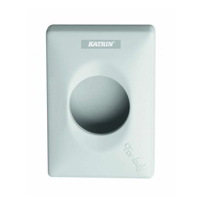 Zásobník z ABS plastu na dámske hygienické vložky s kapacitou 25 sáčkov. Rozmery zásobníka 102 × 148 × 29 mm.