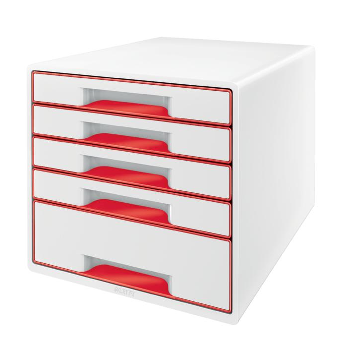 Zásuvkový box Leitz WOW s 5 zásuvkami červený