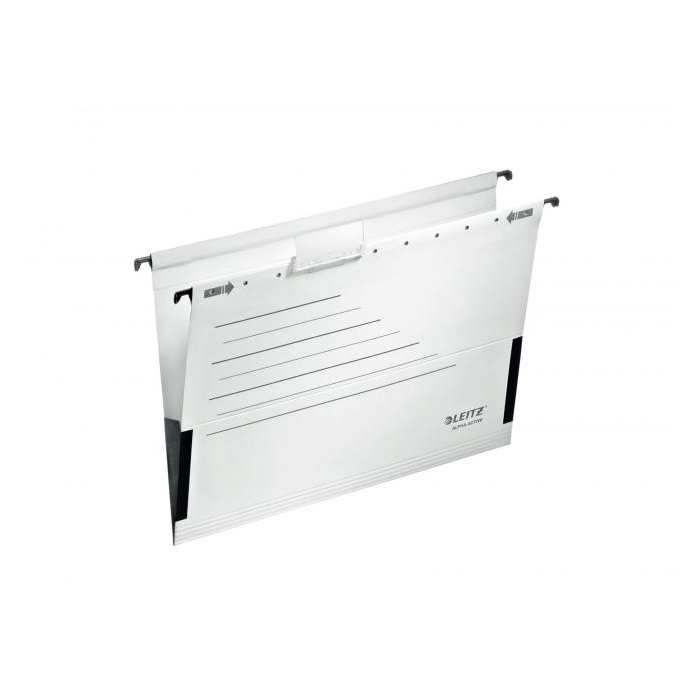 Závesný obal atraktívneho dizajnu z kartónu vysokej kvality gramáže 225 g. Bočnice na zabránenie vypadnutiu dokumentov, závesná lišta so zasúvateľnými háčikmi pre lepšiu manipuláciu a mobilitu, skrývateľný index s popisom viditeľným i po jeho „skrytí“. Farba: biela Balenie: 5 ks