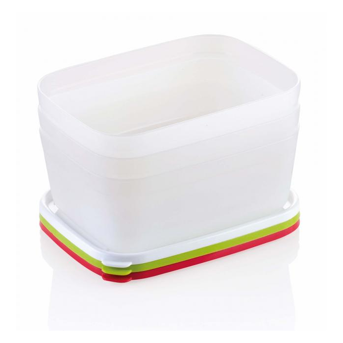 Dózy vyrobené zo špičkového plastového materiálu určeného pre zdravotníctvo a farmáciu, vynikajúce pre hygienické uloženie potravín v mrazničke alebo chladničke. Použitý materiál je neutrálny, neovplyvňuje kvalitu pokrmov ani pri dlhodobom zmrazení a skladovaní. Sú elastické, ľahko sa otvárajú aj zatvárajú a dokonale tesnia. Vybavené farebnými viečkami pre ľahké rozlíšenie pri oddelenom skladovaní mäsa, zeleniny, ovocia a pod., stohovateľné na seba aj do seba pre úsporu miesta. Vhodné do mrazničky, chladničky, mikrovlnnej rúry a do umývačky. Balenie 3 ks. Objem 1 liter. 3 roky záruka.