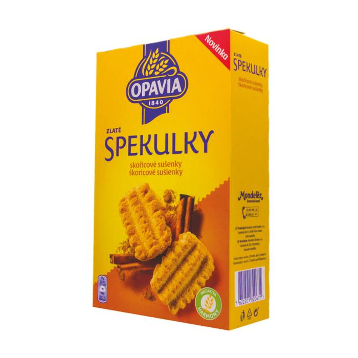 Pšeničná múka 47 %, Cukor, Palmový tuk, Hnedý cukor, Fruktózo-glukózový sirup, Kandysový sirup, Kypriaca látka (uhličitany sodné), Sušené vajcia, Glukózový sirup, Farbivo (obyčajný karamel), Škorica 0,2 %, Jedlá soľ, Aróma