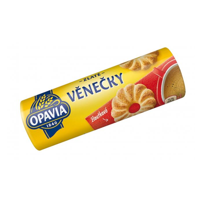 PŠENIČNÁ múka, Cukor, Palmový tuk, Sušená srvátka (z MLIEKA), Sušené VAJEČNÉ žĺtky 2 %, SÓJOVÁ múka, Jedlá soľ, Kypriaca látka (E 503), Arómy, Emulgátor (SÓJOVÝ lecitín). Môže obsahovať ORECHY.