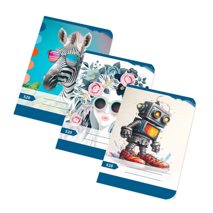 Malý školský zošit 520 s čistým papierom z kvalitného bezdrevného zošitového papiera, balený vo fólii po 20 ks.