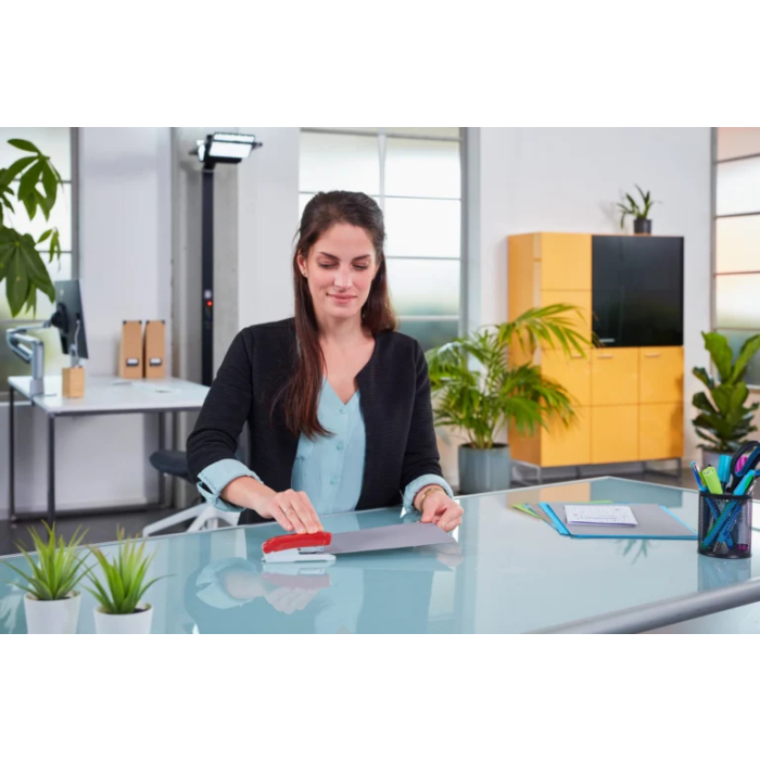 Praktická a ľahká zošívačka kancelárska zošívačka novej kolekcie Evolution s plastovým vrchným dielom a integrovanou kovovou rozošívačkou na zadnej časti. Kapacita náplne 100 spiniek veľkosti  10. Kapacita zošitia 15 listov papiera. Možnosť využitia kancelárských zošívačiek Novus sa nazýva spinkovanie. Konce spiniek sa neohýbajú, ale sa kolmo zapustia do podložky.