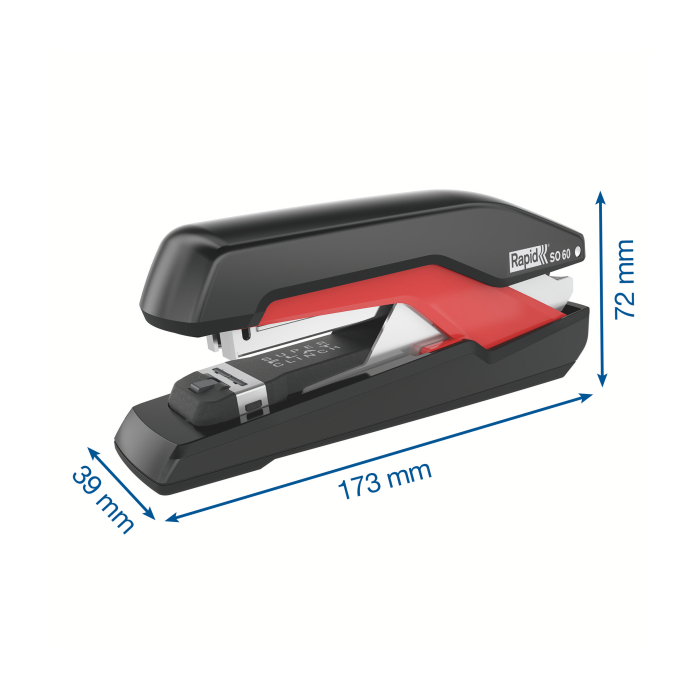 Revolučná zošívačka kompaktných rozmerov a s klasickou kapacitou zásobníka, vybavená patentovanou technológiou Omnipress®, ktorá umožňuje s minimom sily stlačiť zošívačku po celom jej tele a ľahko tak zošiť dokument na stole i v ruke. To všetko v kombinácii s technológiou super plochého zošívania SuperFlatClinch prinášajúcou 40 % úsporu miesta pri zakladaní takto zošitých dokumentov. Farba čierna/červená.